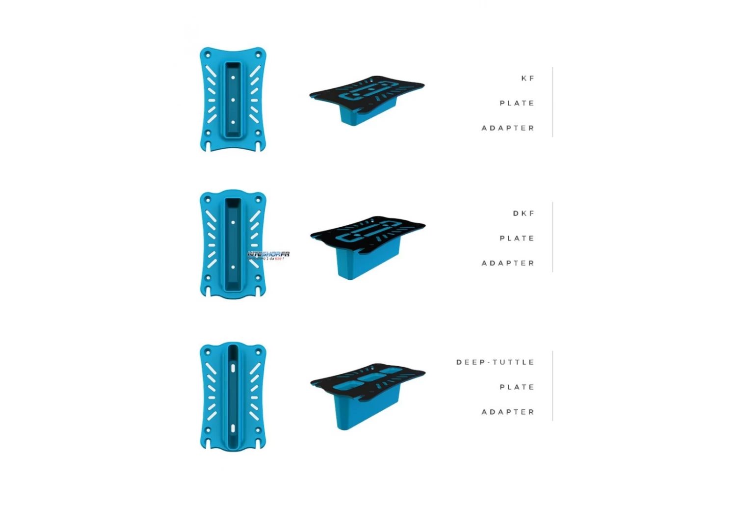 La gamme d’adaptateurs pour FOIL F-ONE permet de connecter un foil en KF, Deep KF or Deep Tuttle sur une planche équippée d’un Twin Track System.