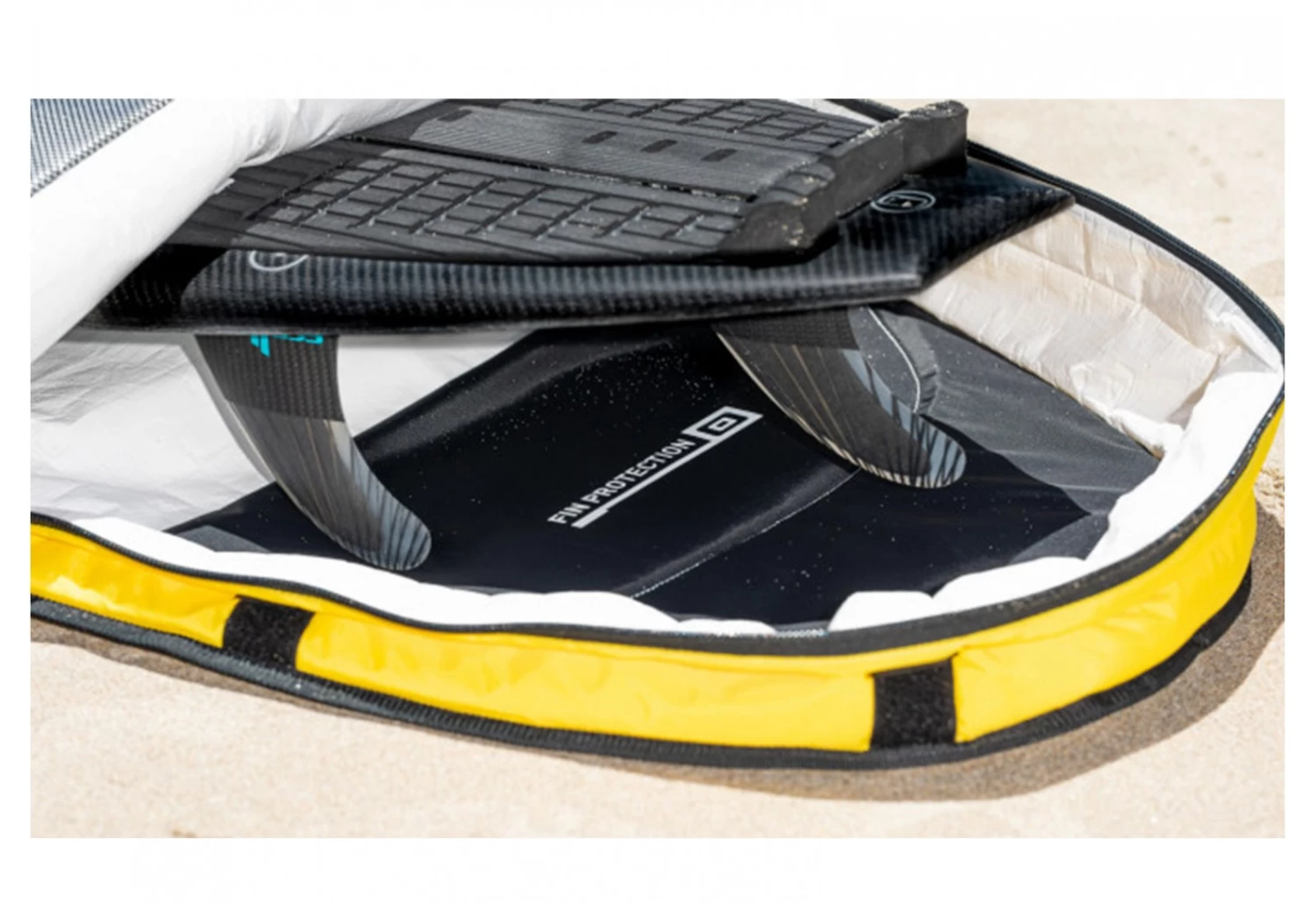 Protection optimale: Disposant de 5mm de mousse PE de rembourrage, porté à 10mm au niveau de la proue et de la poupe sur les versions surf Fermeture robuste: Notre zip à ouverture extra large, doté d’une languette colorée anti-dérapante offre un accès rapide Protection anti-abrasive contre les ailerons tranchants prolonge la durée de vie Poche internes spacieuses pour ailerons, outils, cire et leash Extension rembourrée: Les versions surf disposent d’une extension arrière rembourrée offrant assez de place pour accueillir des ailerons montés
